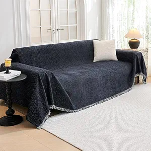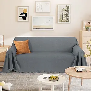 I purchased the TAOCOCO Couch Cover to my three-cushion sofa recently and it became a great investment. We feel like it is very durable, and since it was made of the heavy-duty material, it is excellent to cover pet hair, scratches, and spills. I use daily wear and tear of a dog and young kids and this cover is durable. The dark grey shade is very contemporary and conceals dirt in-between washes which is massive advantage. It measures 71”x118” and has the size to fit my sectional perfectly and cover all the areas I want to cover. The tassels provide a good ornamental value that makes the couch look elegantly comfortable. I have already washed it and it looks as new-coloured-no shrinking or fading. The fabric is glued rather decently, particularly in case you tuck it in. It is also not that hard to sit in it and feel plastic or hard. On the whole, I am quite satisfied with this purchase, and, in general, it can be recommended as a cheap and elegant method to cover the furniture.