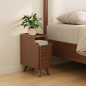 I have just bought this small nightstand of walnut and it looks quite nice and very handy. It is solid wood which is not flimsy like other furniture I have ordered online. It is sleek in design and can be used in small places, therefore, appropriate in small rooms or apartments. The walnut finish is comfortable and classy and it goes with my existing decor. The drawers are also smooth to slide and very spacious in this small unit. I store my necessities in them like books, glasses and chargers and they are well organized. It was simple and took less than 20 minutes. I prefer the workmanship of it, it is a good product, it is something that will last years. It is convenient, though not bulky, which is what I needed. Overall, I am very satisfied and would recommend this nightstand to any person who requires a space-saving and at the same time an attractive bedside table.
