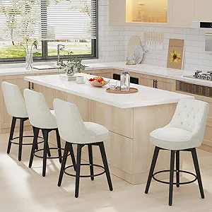 I just bought the Vipbear Swivel Bar Stools with its set of 4 and they have been an incredible improvement to my kitchen island. Thick and comfortable white upholstered fabric seats are comfortable so that long meals or conversations can be achieved in. I like the contemporary nature, which blends well with my decor in the dining room. The swivel action is very convenient and the scanning is done easily without the crowd getting up. Firm legs have been used that are made of solid wood which are good enough to give stability. The 26 height with a seat is just appropriate to my counter giving me a good support and comfort. Installation could be done without any struggle as we were given explanations. The stools are sturdy and solid, and also made out of quality materials. They wash up easily and this is a big advantage when we have kids around. Altogether, it is a good-looking product, as well as comfortable and practical, especially taking into account the price. I strongly endorse them to someone who wants to redo his or her kitchen seating.
